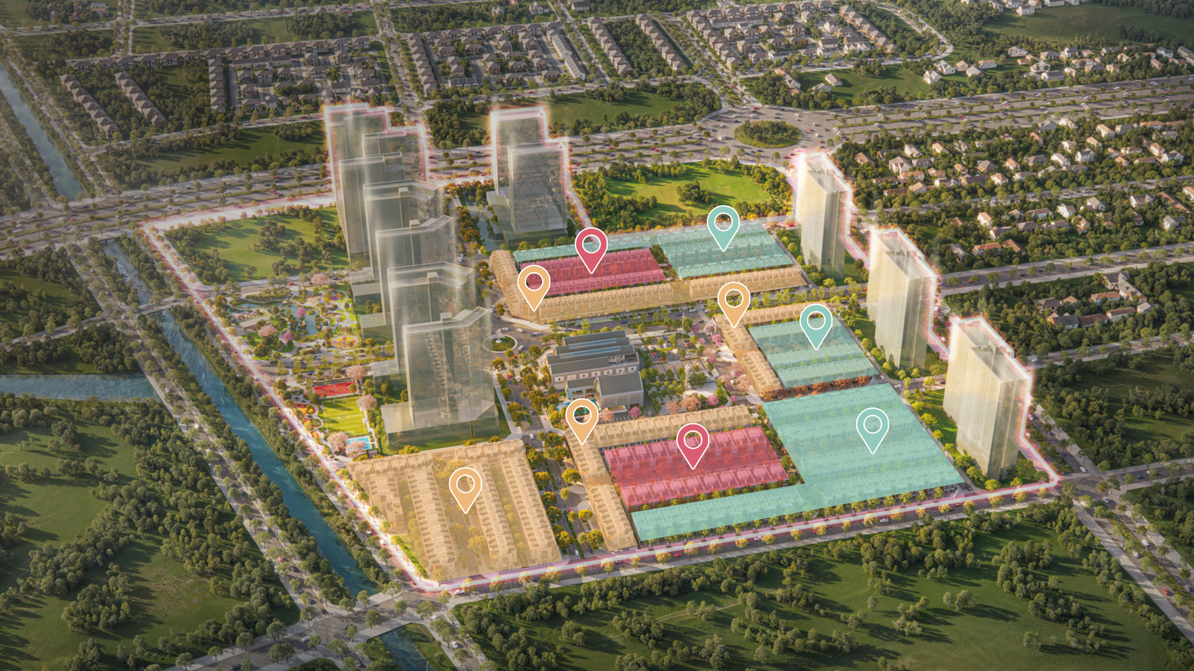 Dự án có đa dạng các loại hình nhà ở bao gồm townhouse và shophouse, được thiết kế hiện đại với kết cấu 3 tầng, trần cao, cửa kính full-height và ban công rộng lớn. Lối thiết kế này không chỉ mang đến sự thoáng đãng, tối ưu hóa ánh sáng tự nhiên và không gian sống, mà còn tạo cảm giác sang trọng, hiện đại.